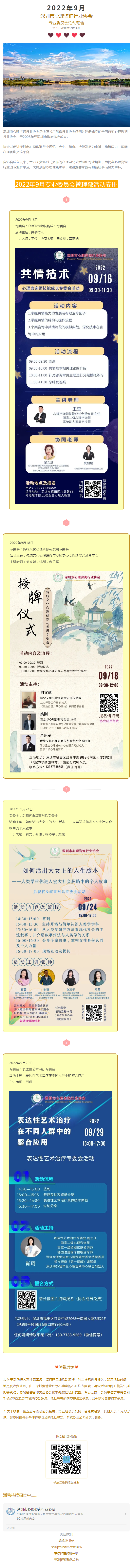 2022年9月深圳市心理咨询行业协会专业委员会活动预告